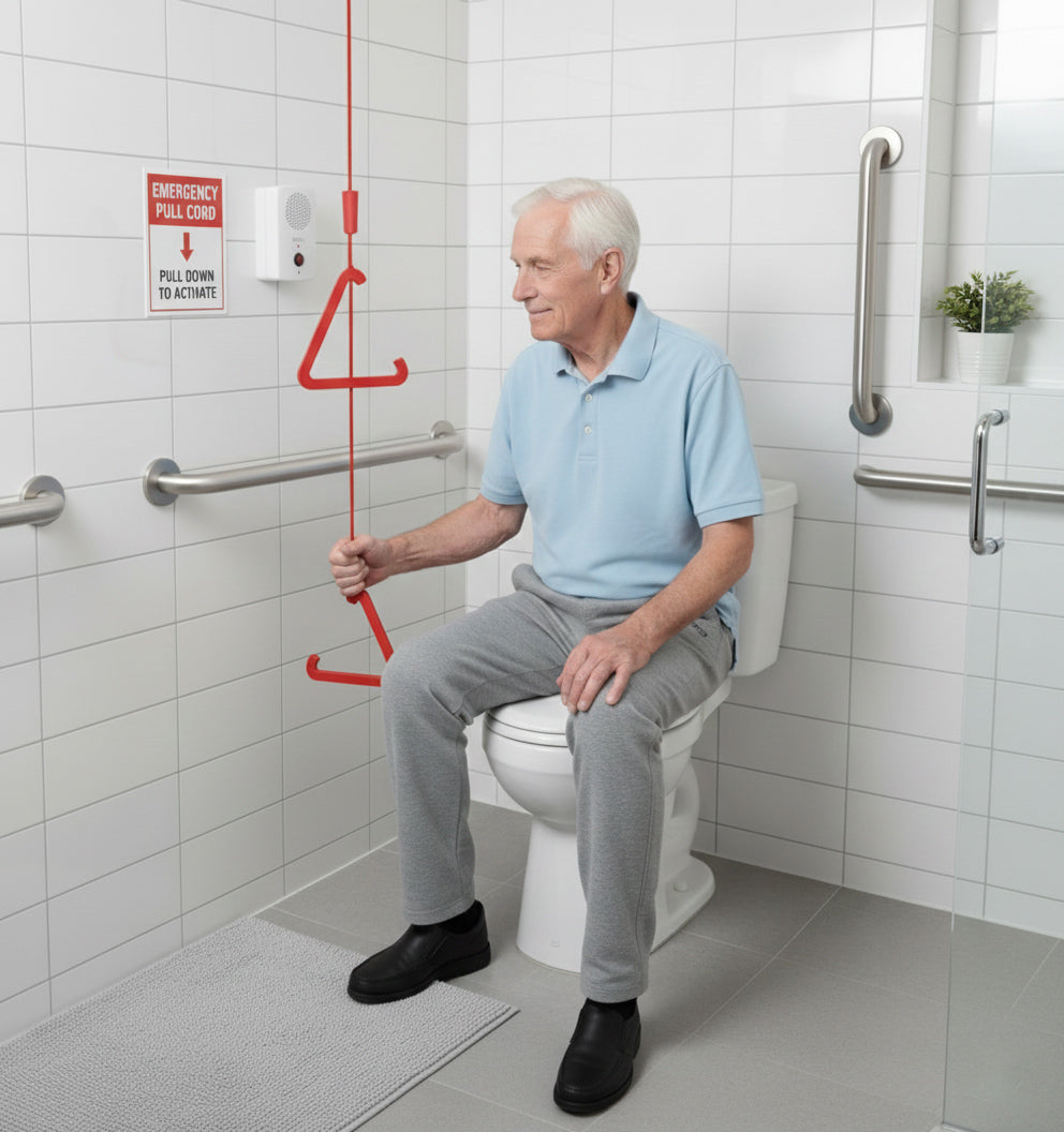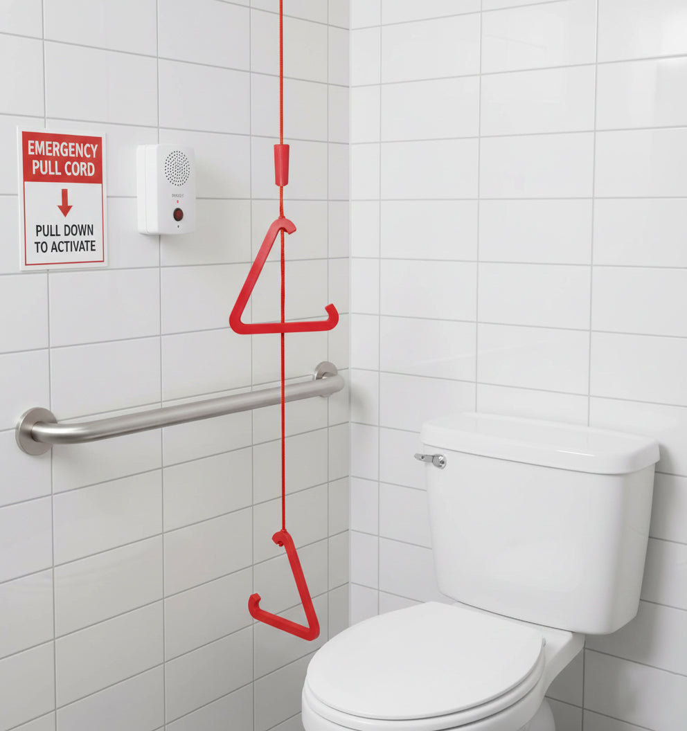 Bright red triangle pulls provide fast, reliable help, ensuring immediate visibility and accessibility in bathrooms, care facilities, and any emergency situation.
